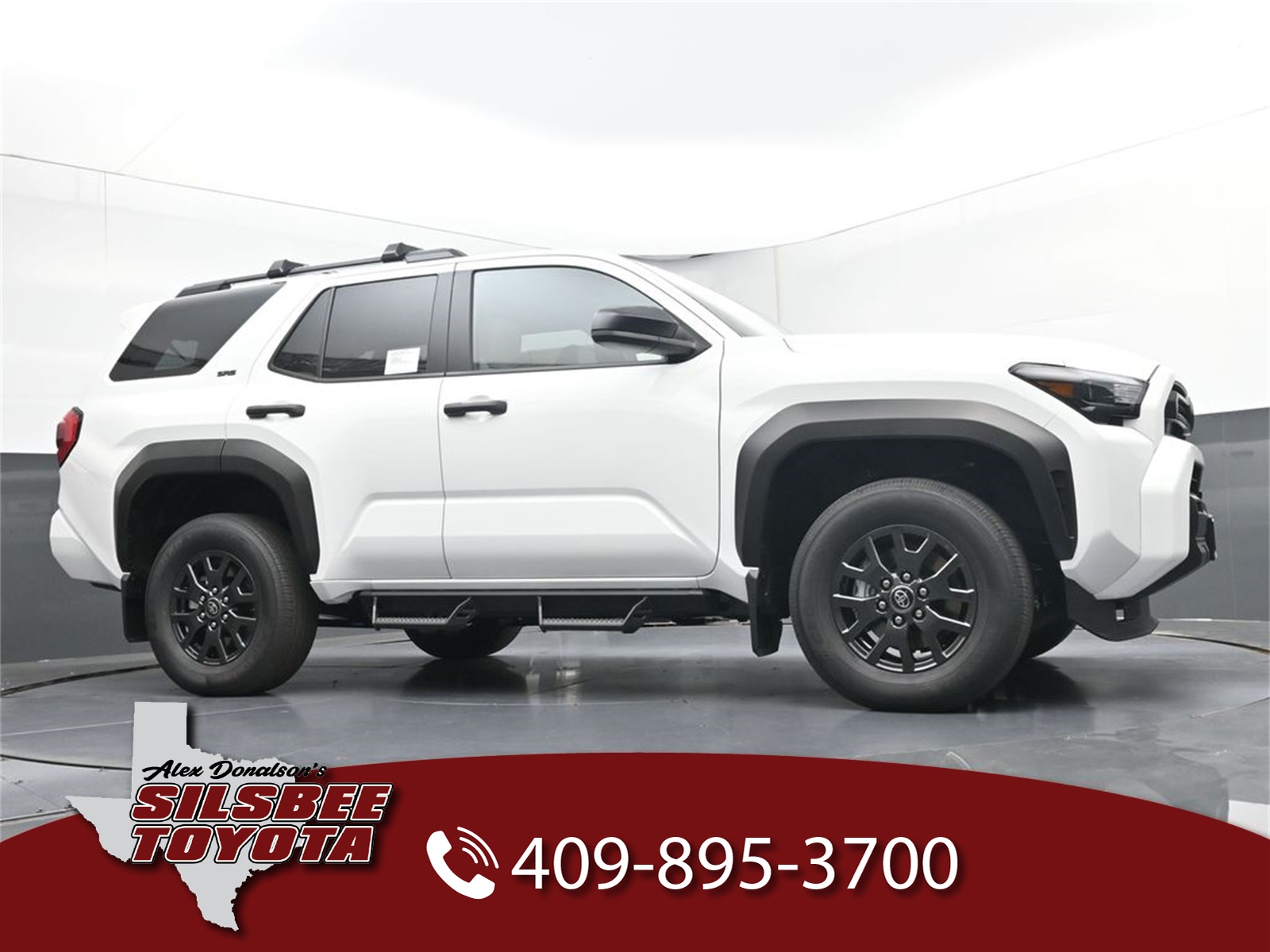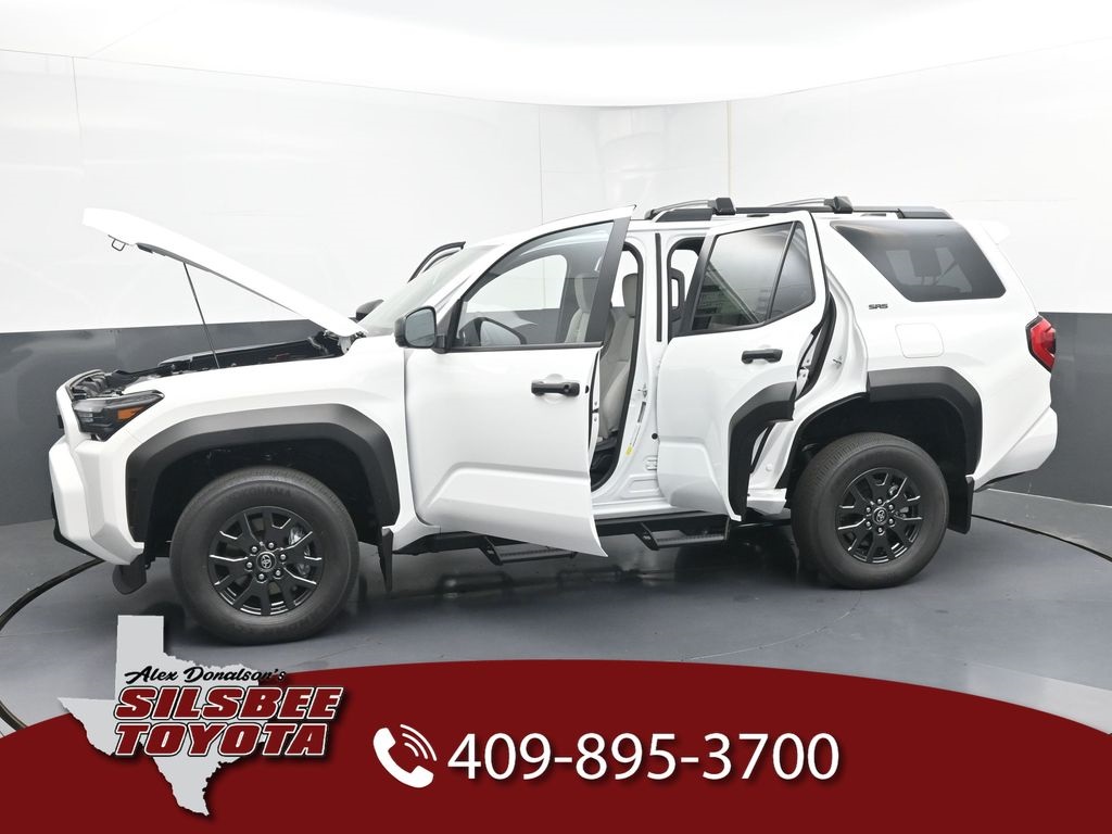 - Black horizontal-bar grille, mirror caps, door handles, and overfenders; color-keyed rear spoiler; black "SR5" and "4RUNNER" badges