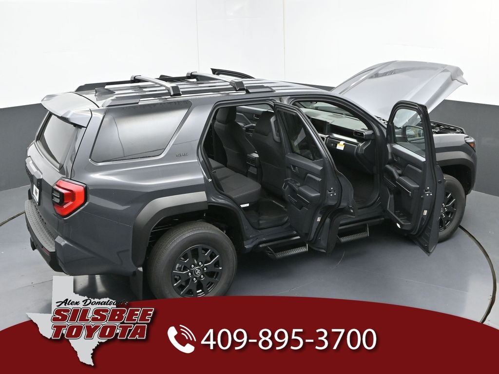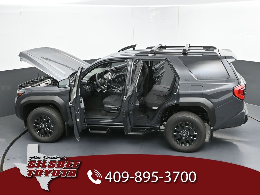 - Black horizontal-bar grille, mirror caps, door handles, and overfenders; color-keyed rear spoiler; black "SR5" and "4RUNNER" badges