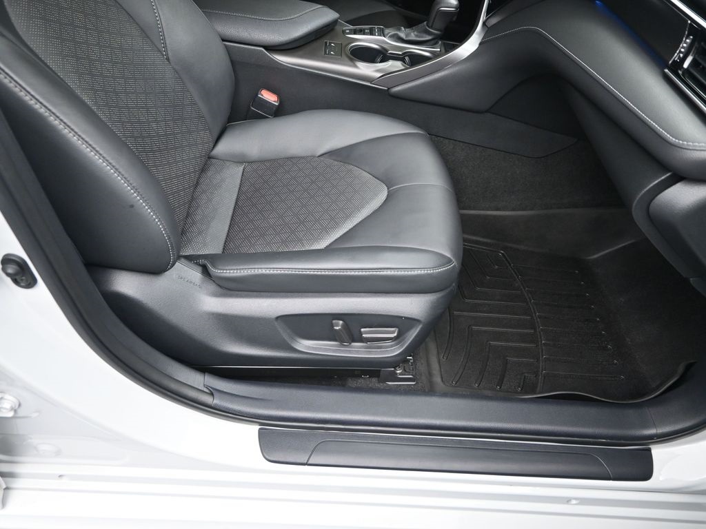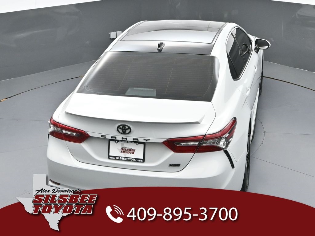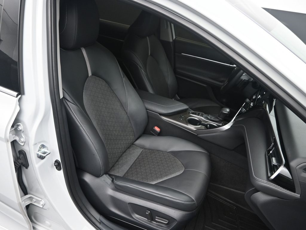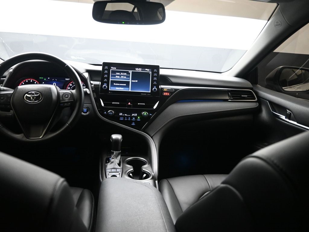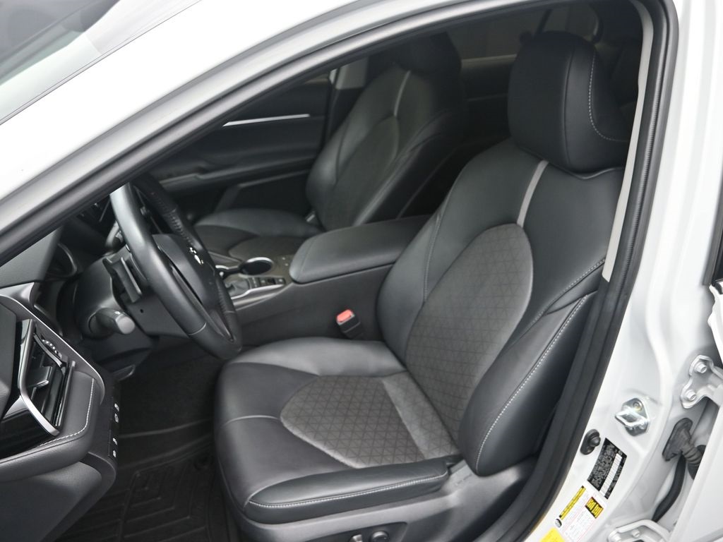 This Vehicle Comes With The Following Features And Options: Camry XSE, Toyota Gold Certified Certified, Black Leather, 4-Wheel Disc Brakes, 6 Speakers, ABS brakes, Air Conditioning, Alloy wheels, AM/FM radio: SiriusXM, Apple CarPlay/Android Auto, Auto High-beam Headlights, Auto-dimming Rear-View mirror, Automatic temperature control, Brake assist, Bumpers: body-color, Delay-off headlights, Driver door bin, Driver vanity mirror, Dual front impact airbags, Dual front side impact airbags, Electronic Stability Control, Emergency communication system: Safety Connect (1-year trial), Exterior Parking Camera Rear, Four wheel independent suspension, Front anti-roll bar, Front Bucket Seats, Front Center Armrest, Front dual zone A/C, Front reading lights, Fully automatic headlights, Garage door transmitter: HomeLink, Heated door mirrors, Heated front seats, Illuminated entry, Knee airbag, Leather steering wheel, Low tire pressure warning, Multi-Stage Heated Front Bucket Seats, Occupant sensing airbag, Outside temperature display, Overhead airbag, Overhead console, Panic alarm, Passenger door bin, Passenger vanity mirror, Perforated Leather Seat Trim, Power door mirrors, Power driver seat, Power passenger seat, Power steering, Power windows, Radio data system, Radio: Audio Plus, Rear anti-roll bar, Rear reading lights, Rear seat center armrest, Rear side impact airbag, Rear window defroster, Remote keyless entry, Security system, Speed control, Speed-sensing steering, Split folding rear seat, Spoiler, Steering wheel mounted audio controls, Tachometer, Telescoping steering wheel, Tilt steering wheel, Traction control, Trip computer, Turn signal indicator mirrors, Variably intermittent wipers, and Wheels: 8.0J x 19" Alloy.